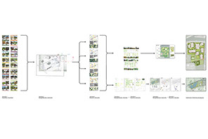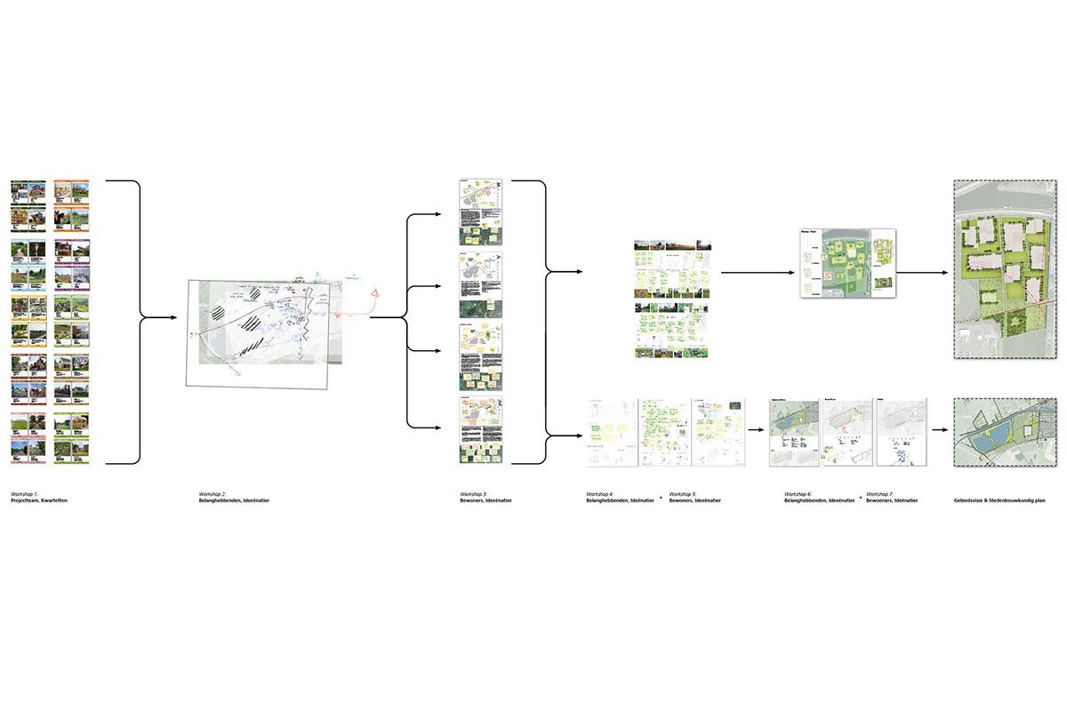 Binnen zo’n gebied zijn de belangen natuurlijk niet gelijk en lopen de wensen uiteen. In het de eerste deel van het participatieproces hebben we daarom niet direct met ontwerpen en oplossingen gepresenteerd, maar hebben we de ruimtelijke randvoorwaarden en mogelijkheden bepaald en aangescherpt. Omdat niet iedere deelnemer dezelfde bibliotheek met referentievoorbeelden in zijn of haar hoofd heeft hebben we hiervoor een kwartetspel met voorbeelden gebruikt. Het doel hierbij is niet om een kwartet te vervolledigen, maar om telkens een set van vier concrete voorbeelden met beeld op tafel te kunnen leggen bij abstracte onderwerpen als ‘veel groen’ of ‘kwalitatieve architectuur’. De eerste drie workshops hebben hierdoor geleidt tot de ruimtelijk landschappelijk uitgangspunten voor het gebied.
